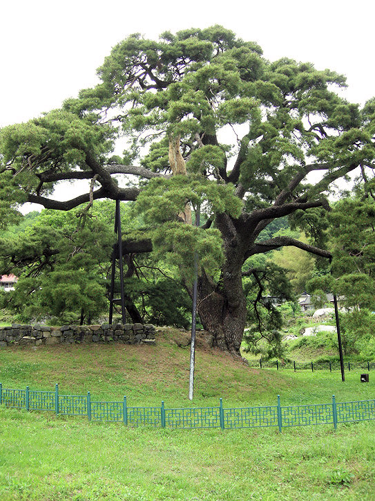 수령: 약 540년. 높이: 17.7m. 가슴높이 둘레: 6.15m.