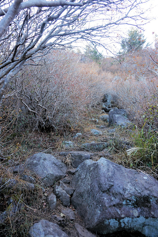 진달래 터널을 지난 후 바위 봉우리 옆을 지나갑니다. 정상이 얼마 남지 않았습니다.