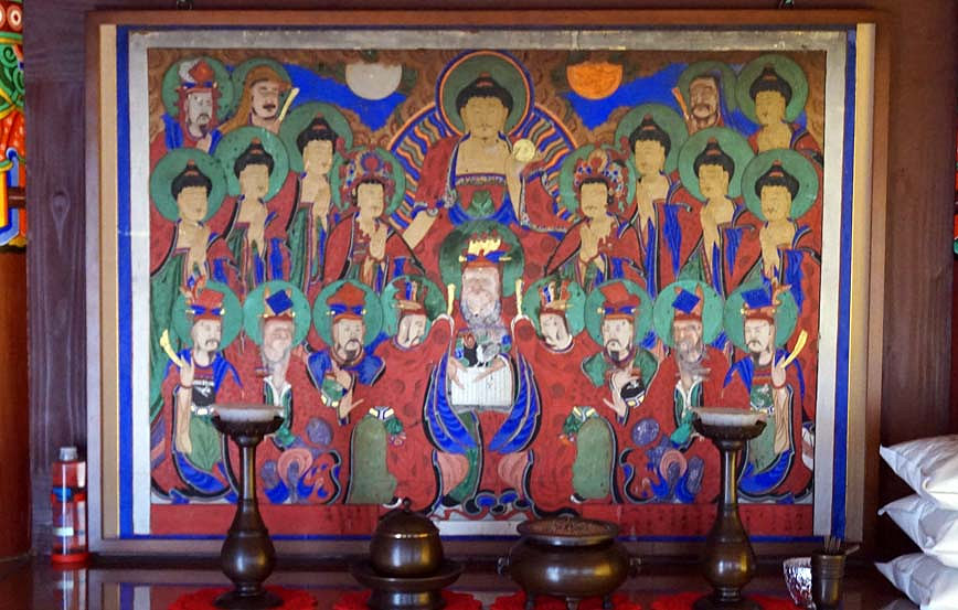 대웅전 내부입니다. 후불화로 근대에 그려진 영산회상도(靈山會上圖)가 있습니다.