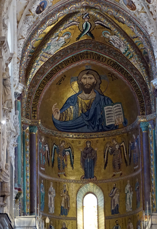 본당의 가장 깊숙한 곳인 후진(後陣, Apse)은 비잔틴 양식으로, 반 돔 형식의 벽면에 예수 그리스도, 성모 마리아와 4명의 대천사, 사도들과 복음주의자들 등이 황금색 모자이크로 장식되어 있습니다.