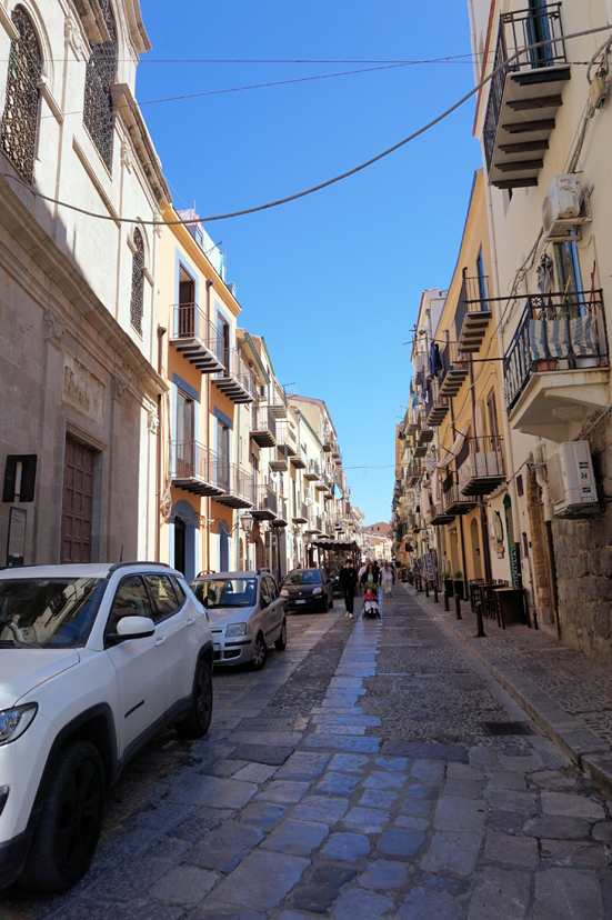 체팔루의 골목길입니다. 그 끝은 바다로 이어집니다.