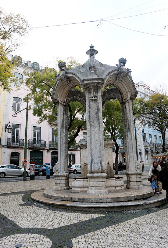 카르모 수녀원 앞 광장에 있는 카르모 분수대(Chafariz do Carmo)입니다. 이 분수대는 1700년대에 세워진 분수대입니다.