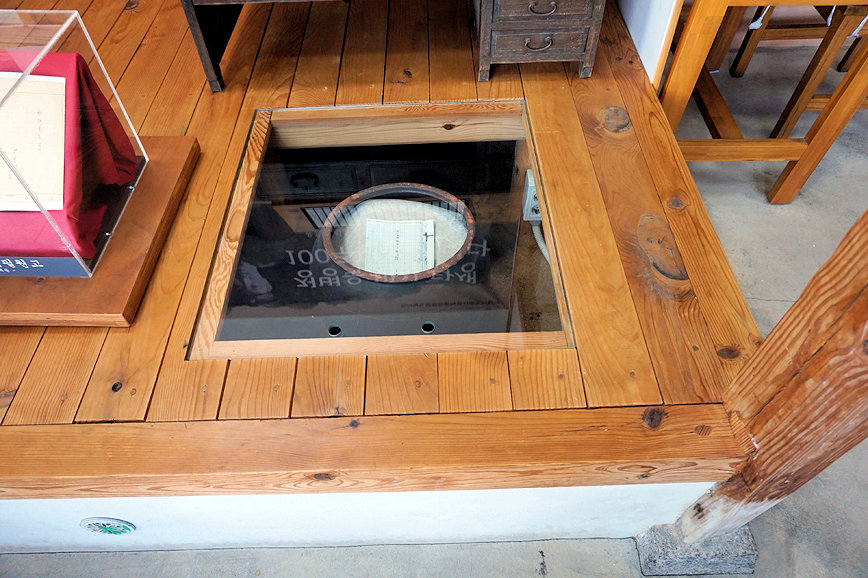 가옥 내부에 윤동주 시인의 자필 원고를 마루 밑에 숨겨두었던 모습을 재현해 보여주고 있습니다.
