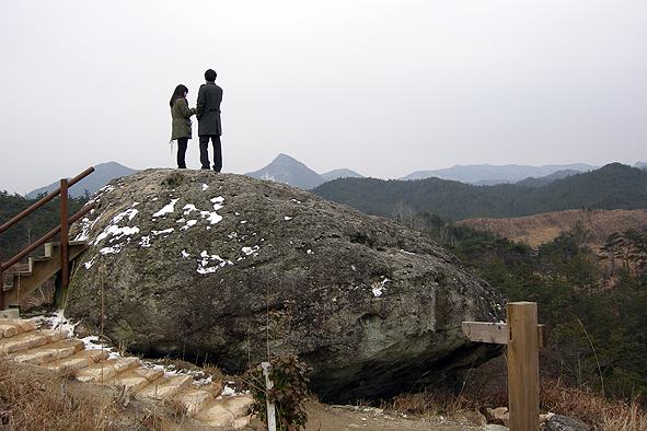 운주사 뒷산 8부 능선 산마루에 커다란 둥근 바위 하나가 있습니다.