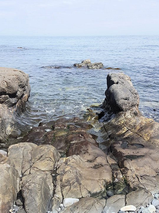 바닷가에 오랜 세월 동안 파도에 씻긴 흔적이 뚜렷한 바위도 있습니다.