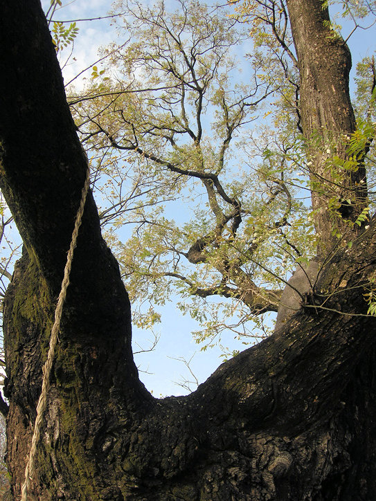 나무줄기에 금줄이 여러 겹 감겨 있습니다. 이 회화나무 아래에서 정월 대보름에 동제(洞祭)를 지낸다고 합니다.