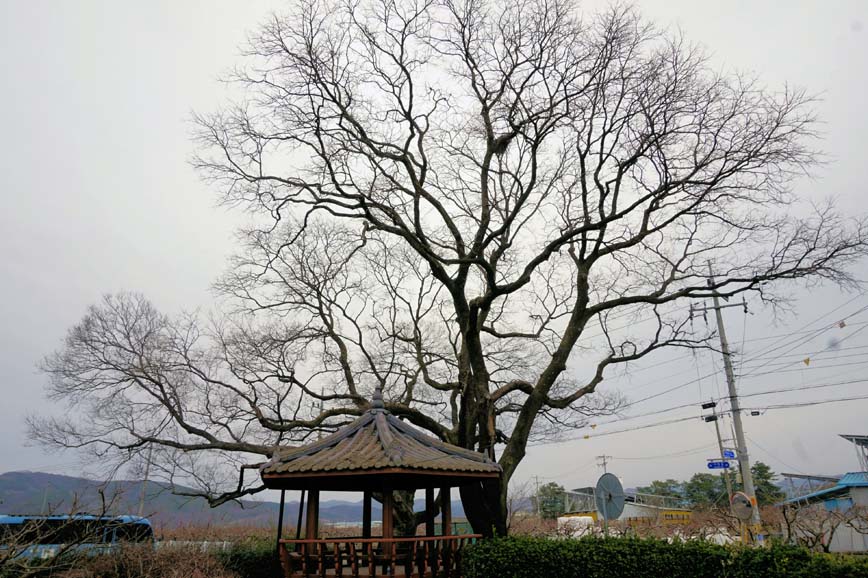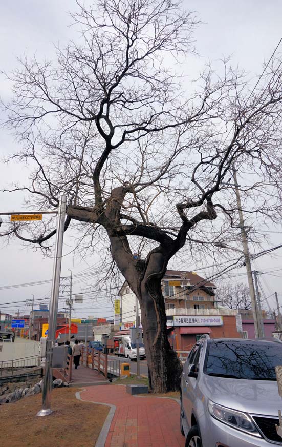경북 경산시는 유독 보호수 회화나무가 많습니다. 그중 일부를 소개합니다. 속초리 회화나무는 경산시 진량읍 속초리 마을 입구 도롯가에 있습니다.