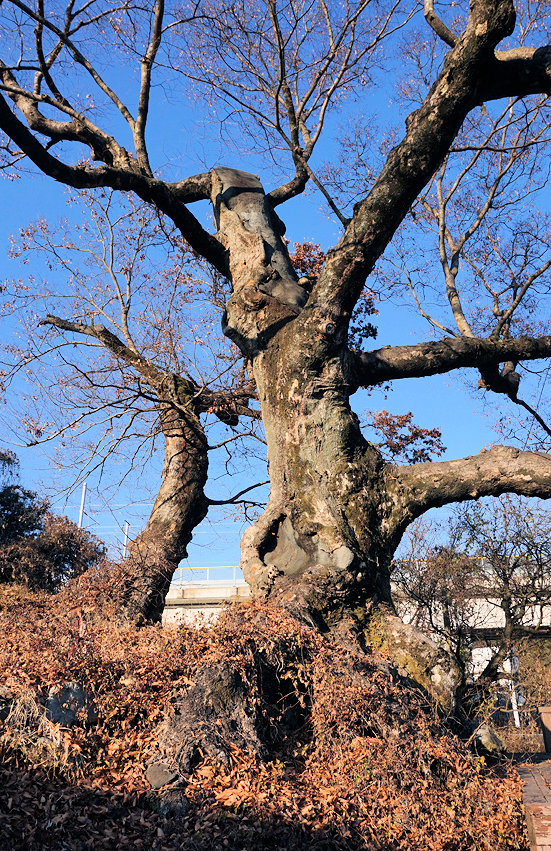 느티나무는 벌거벗은 몸으로 차가운 겨울바람을 맞으며 서 있습니다. 나무 밑동의 옹이에서 오랜 시간을 지나온 세월의 흔적이 느껴집니다.