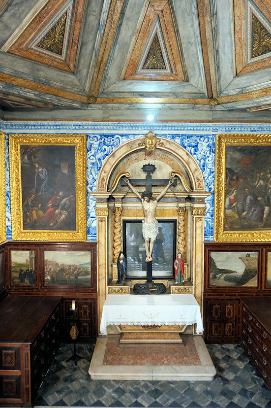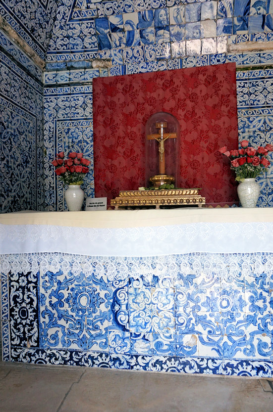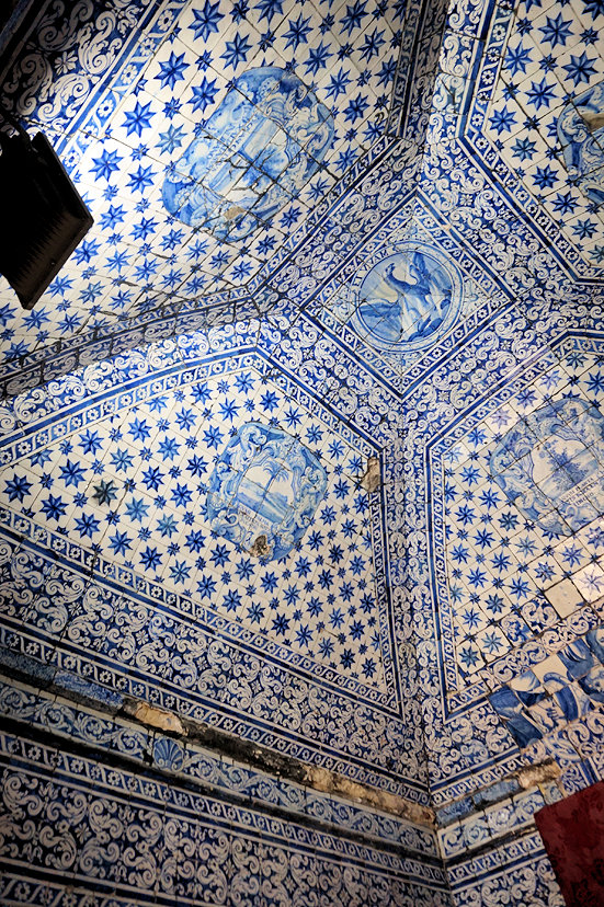 예배당 천장과 벽은 아줄레주(azulejo) 장식으로 눈부시게 화려합니다. 이 아줄레주 장식은 17세기와 18세기에 이루어졌습니다.
