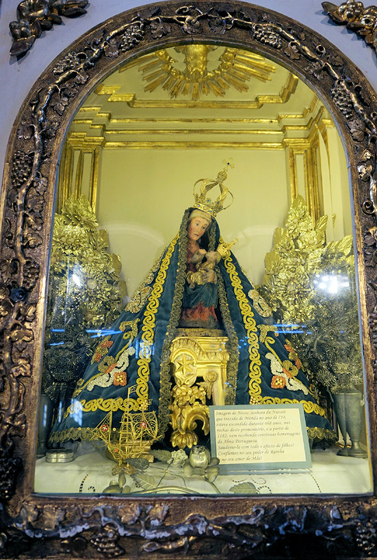 이 성모상은 성모 마리아가 예수님을 잉태한 나자렛(Nazareth)에서 가져왔다고 합니다. 금으로 된 왕관은 주앙 5세가 선물한 것이라고 합니다. 나자레라는 지명도 이 성모상과 관련이 있다고 합니다.