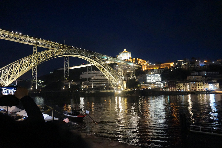 도루강 강변에서 동 루이스 1세 다리(Dom Luís I Bridge)를 바라봅니다. 어느새 포르투에서 첫날 밤이 깊었습니다.