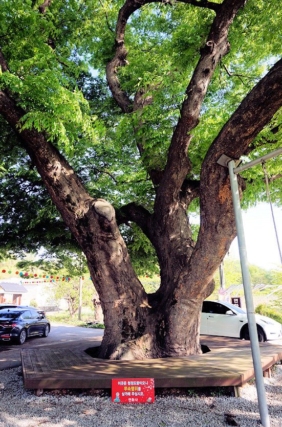 수령: 500년. 높이: 21m. 가슴높이 둘레: 6.5m.